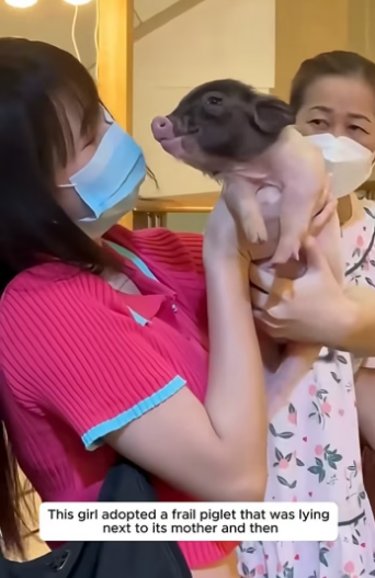 D2204008 This girl adopted a frail piglet that was lying next to its mother and then (Part 2)